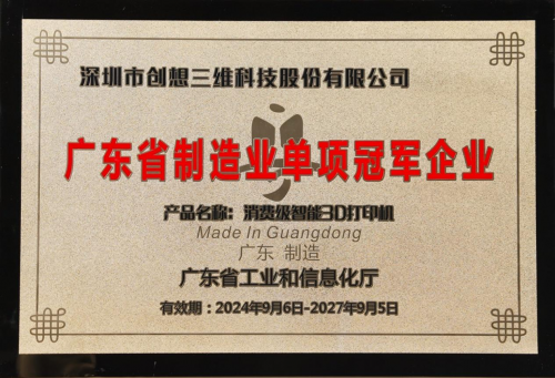 此前,创想三维已获得“广东省制造业单项冠军企业”及“深圳市制造业单项冠军企业”称号,至此已实现了从市级、省级到国家级的“单项冠军”荣誉大满贯。这不仅是对创想三维长期专注与持续创新的肯定,也标志着其行业龙头地位再次巩固。