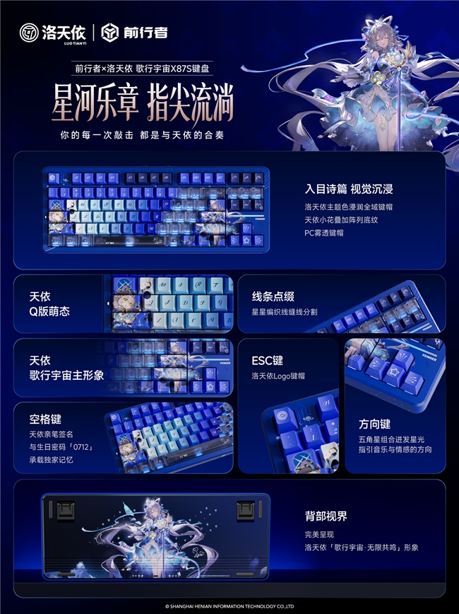 全球首发712套前行者x洛天依歌行宇宙X87s至臻典藏版更是独一无二的享有艺术收藏品,每个版本都带有独立的金属铭刻编号,将硬件价值成功转化为不可替代的情感与文化价值,也确保了产品拥有毋庸置疑的顶级价值和体验。