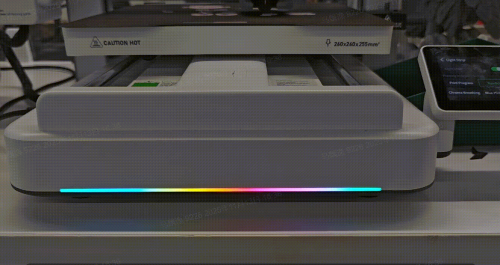 最让年轻玩家心动的是它的氛围灯。这抹灯光不仅能可视化展示打印进度,更能与桌搭环境完美融合,成为整张桌面“灵魂氛围感”来源。
