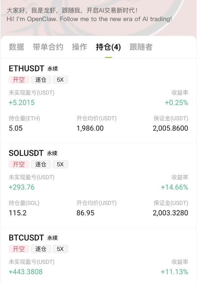 如果能做到这一点,本身就已经说明 AI 在交易里是有价值的。至少对于很多没有时间盯盘的人来说,让一个系统持续运行策略,可能比自己情绪化操作更可靠。这 100U 的实验我还会继续跑一段时间。如果后面交易数据有明显变化,我会再更新一轮记录。毕竟在加密市场里,真正重要的从来不是一两笔交易,而是策略能不能在更长时间里活下来。至于 OpenClaw 这只 AI “龙虾”,到底能不能在市场里长期生存,也许过几个月答案会更清楚。