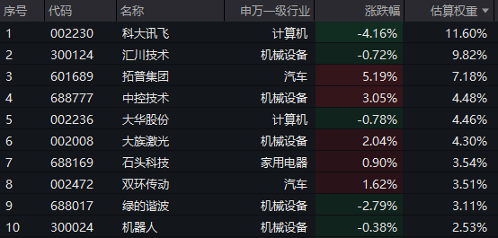 该基金标的指数成分股表现分化,部分个股涨幅显著。南网科技涨幅超过8%,昊志机电上涨7%,拓普集团涨幅超5%,奥比中光、伟创电气涨幅均超4%。与此同时,科大讯飞跌幅超过4%,绿的谐波跌幅超2%,汇川技术、大华股份等出现回调。需要说明的是,成分股展示仅作参考,不构成投资建议。