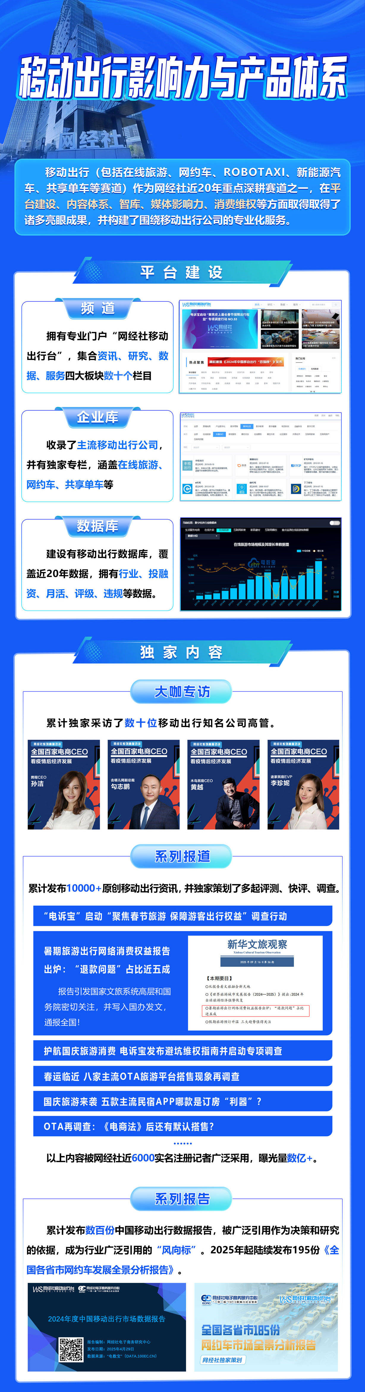 “电诉宝”表示,消费者在春节出行过程中如遇相关问题,可通过平台提供线索。调查行动将通过发布消费预警、投诉受理、媒体联动等方式,维护旅客合法权益。网经社移动出行频道长期关注在线旅游、网约车、共享单车等领域,已构建覆盖平台建设、消费维权、智库研究的专业化服务体系,为行业健康发展提供支持。