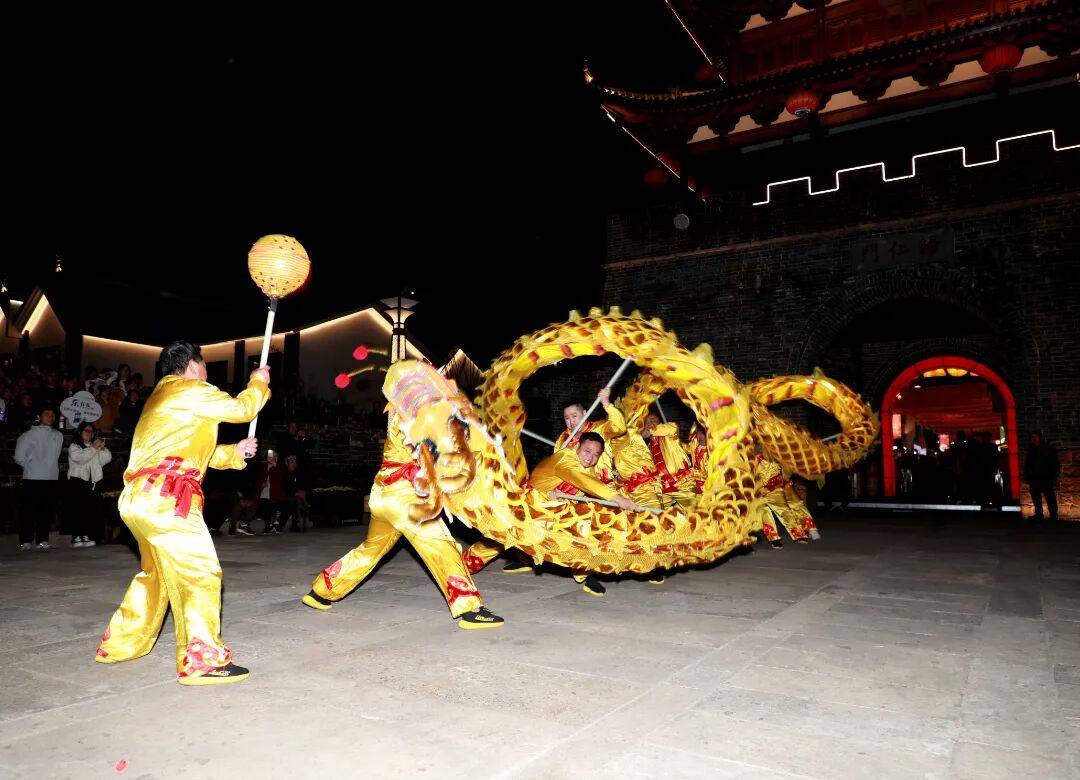 夜幕降临,龙游大南门历史文化街区灯火璀璨,一场融合传统非遗与现代科技的新春巡游展演正在上演。锣鼓声中,由四足机器大狗领衔的队伍率先登场,这只头顶金元宝、身贴福字的科技萌宠迈着精准步伐巡街,瞬间点燃现场气氛。紧随其后的“五路财神”与小儿走马灯演员身着华服,为沿途观众送上新春祝福,欢呼声与喝彩声此起彼伏。