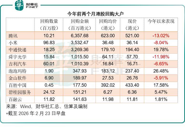 港股市场在2026年开年呈现出与往年不同的回购态势。Wind数据显示,截至2月23日,港股上市公司回购总额约为183.74亿港元,较2025年同期的320.96亿港元大幅下降42.75%,近乎腰斩。这一变化引发市场对回购行为背后逻辑的深入探讨。
